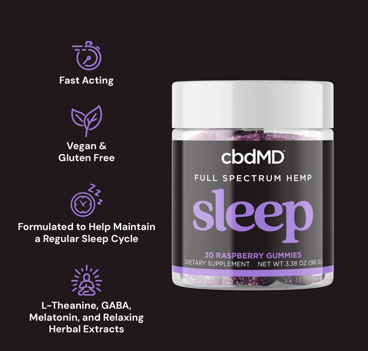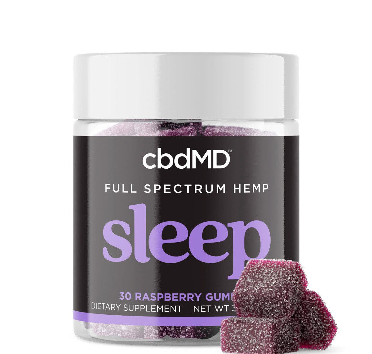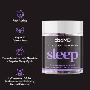 cbdMD, Sleep CBD Gummies, Raspberry, Full Spectrum, 30ct, 90mg THC + 600mg CBN + 1500mg CBD