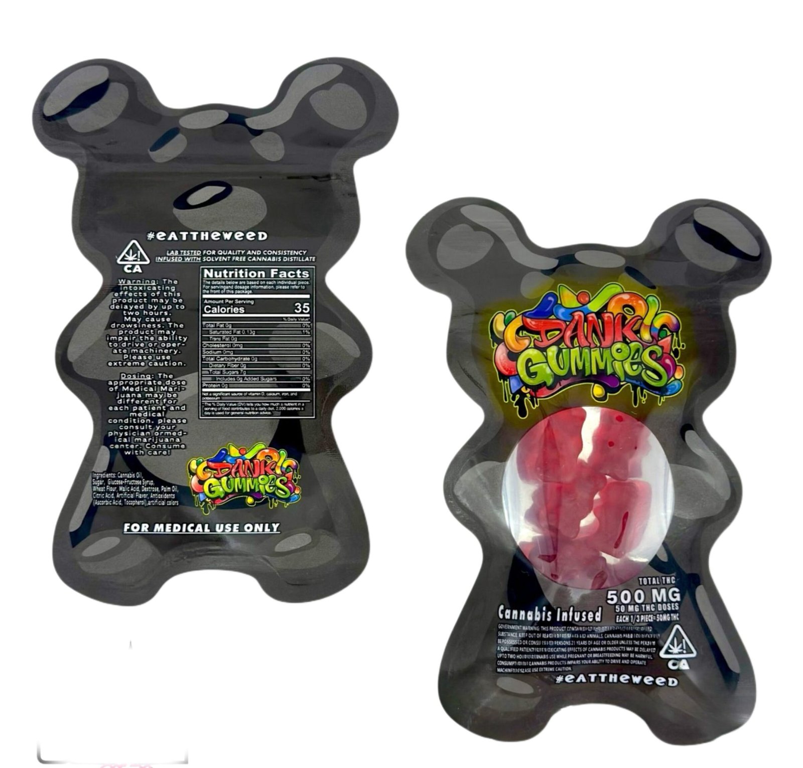 Ingrédients : Sucre, sirop de maïs, gélatine, arômes naturels et extrait de cannabis pur.