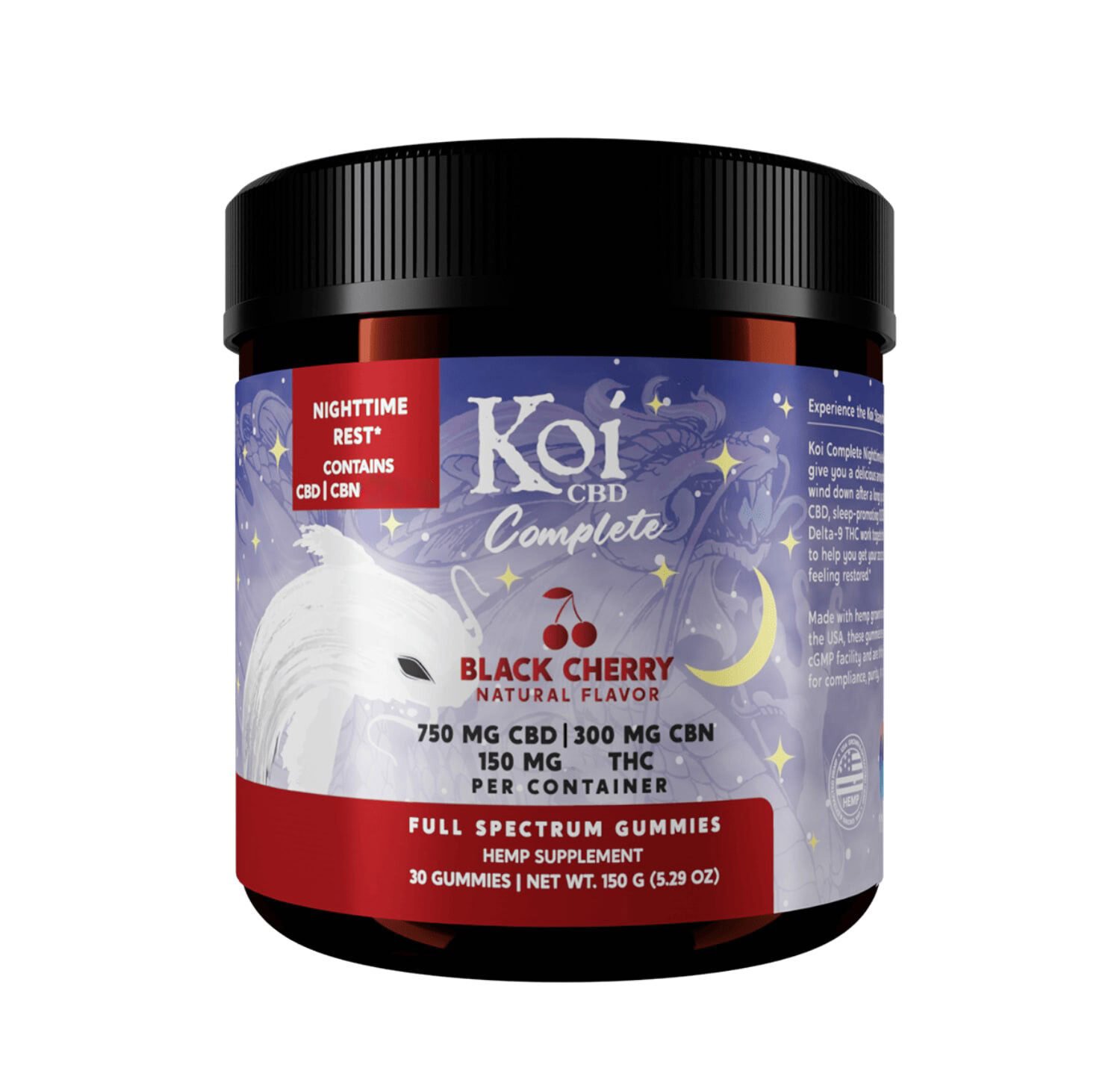 Koi CBD, Complete Full Spectrum CBD Gummies – Nighttime Rest, Black Cherry, 30ct, 300mg CBN + 150mg THC + 750mg CBD