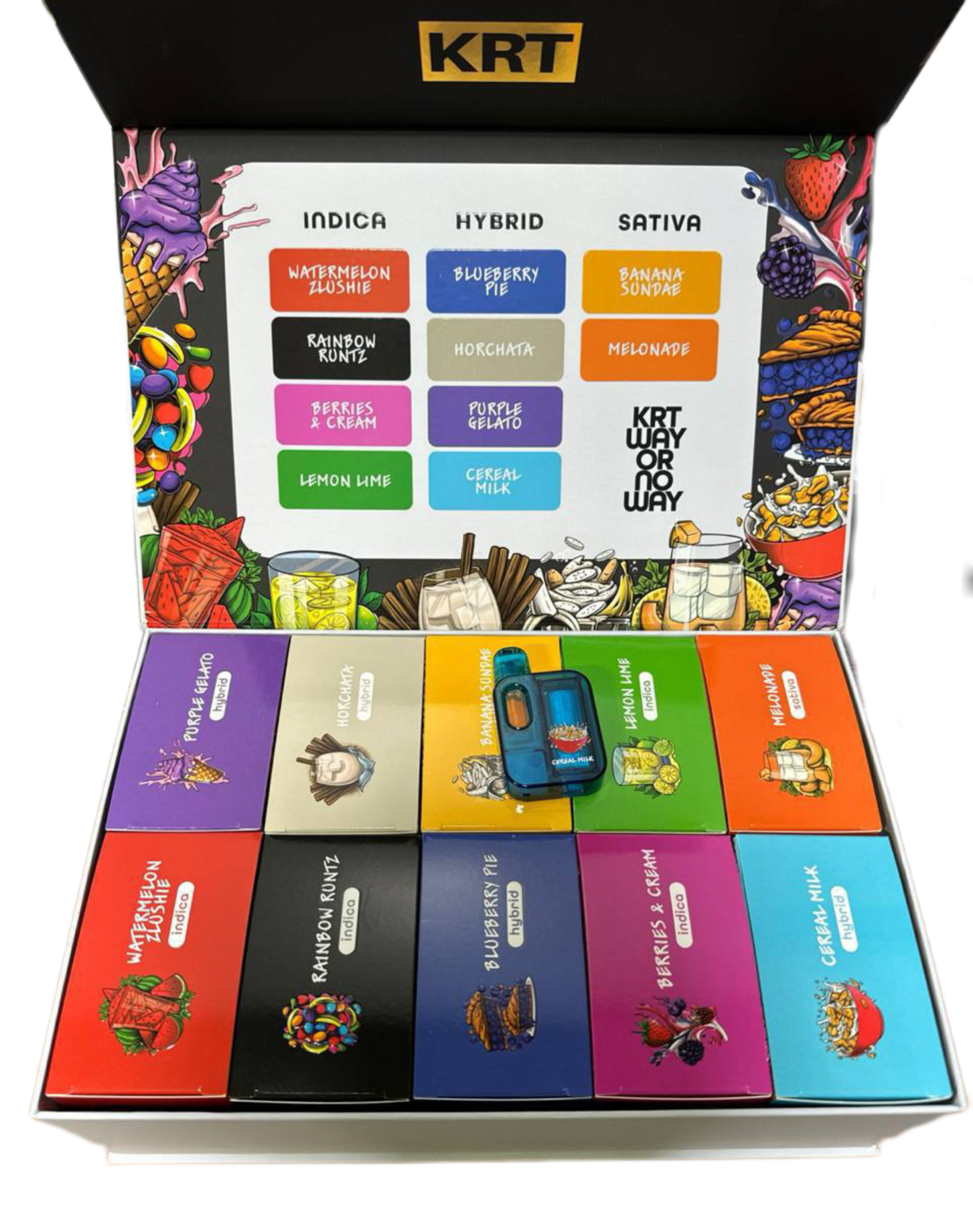| FLAVORS | Top Mixed, Banana Sunday, Berries & Cream, Cereal Milk, Rainbow Runtz, Melonade, Purple Gelato, Watermelon Zlushie, Wedding Cake, Skywalker, Forbidden Fruit, Apple Gelato, Runty OG, Blue Gream, Sour Diesel, Golden Runty, Blueberry Lemon Haz |