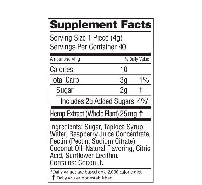 Our gummies and beverages are standardized to contain 25mg of CBD per serving.
